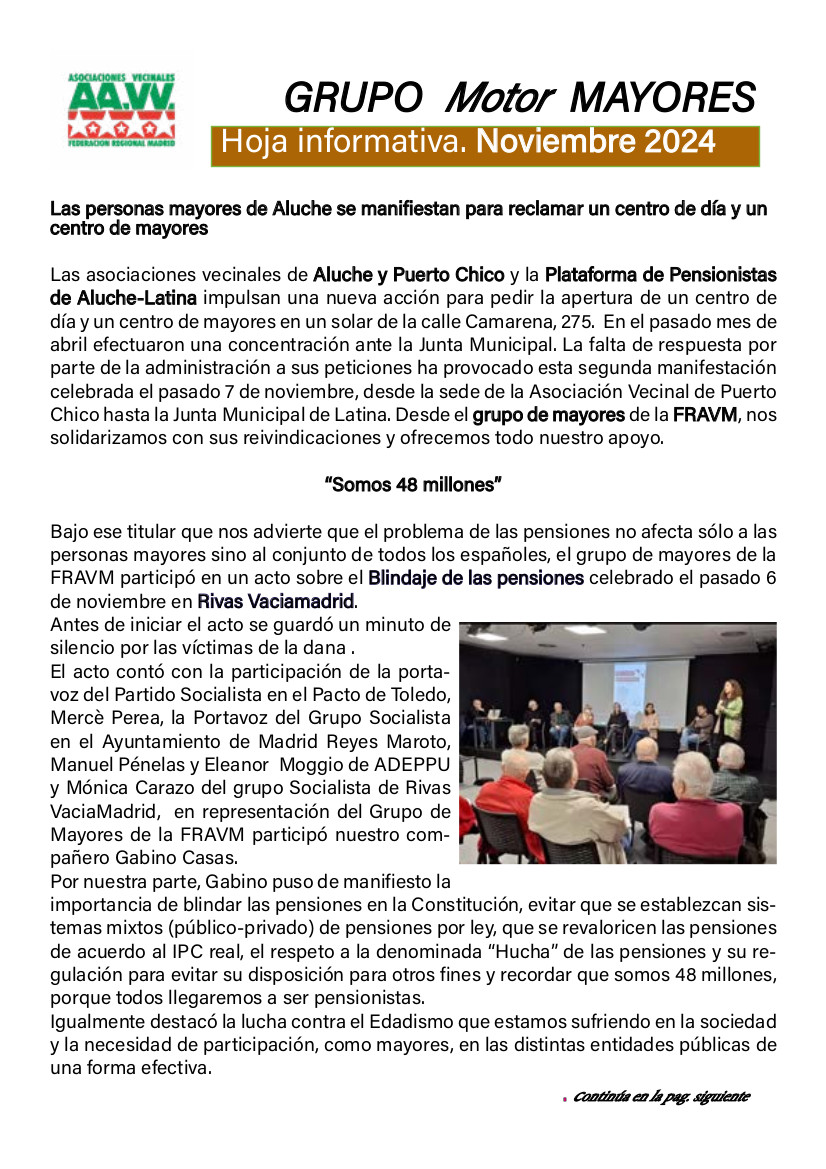 HOJA INFORMATIVA DEL GRUPO DE MAYORES DE LA FRAVM