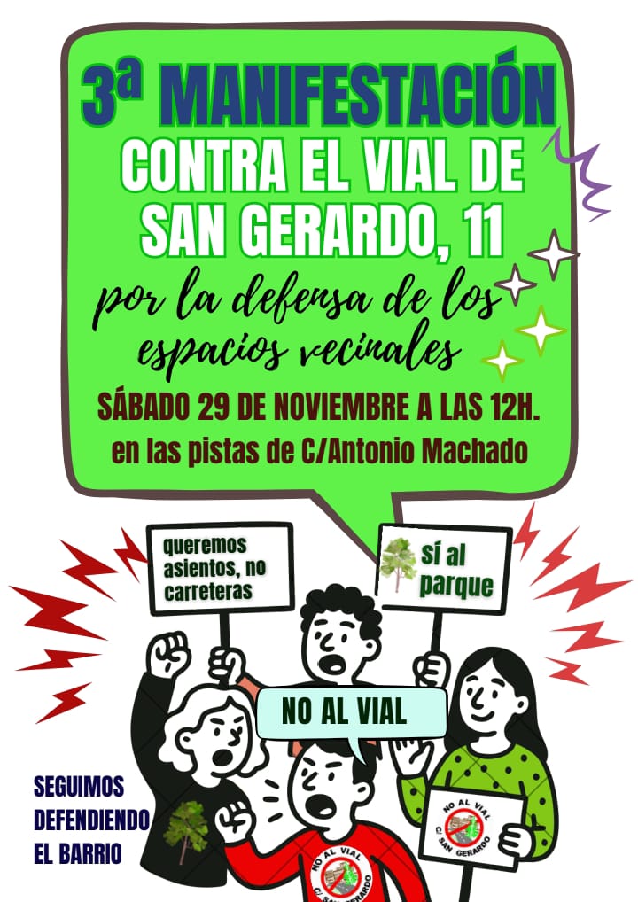 Tras una concentración que tuvo lugar el pasado sábado, 22 de noviembre, que reunió a más de 200 personas, la Asociación Vecinal Poetas-Dehesa de la Villa ha convocado una manifestación contra el Plan Especial para este sábado 29 de noviembre. La marcha, la tercera de estas características impulsada por la entidad en los últimos once meses, partirá a las 12:00 de las canchas deportivas de la calle Antonio Machado y, después de recorrer varias calles del barrio, finalizará en la placita de San Gerardo amenazada por el proyecto municipal.