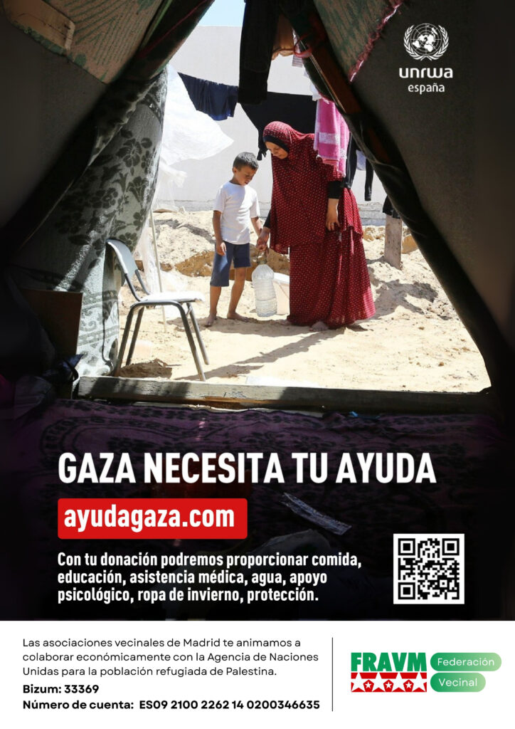 Por eso, apoyar la labor de la UNRWA es hoy imprescindible para que el pueblo palestino salga adelante. Y en este marco, la FRAVM ha decidido llevar a los barrios y municipios de la región madrileña la campaña de solidaridad y captación de fondos que desde hace meses impulsa su filial en nuestro país, UNRWA España.